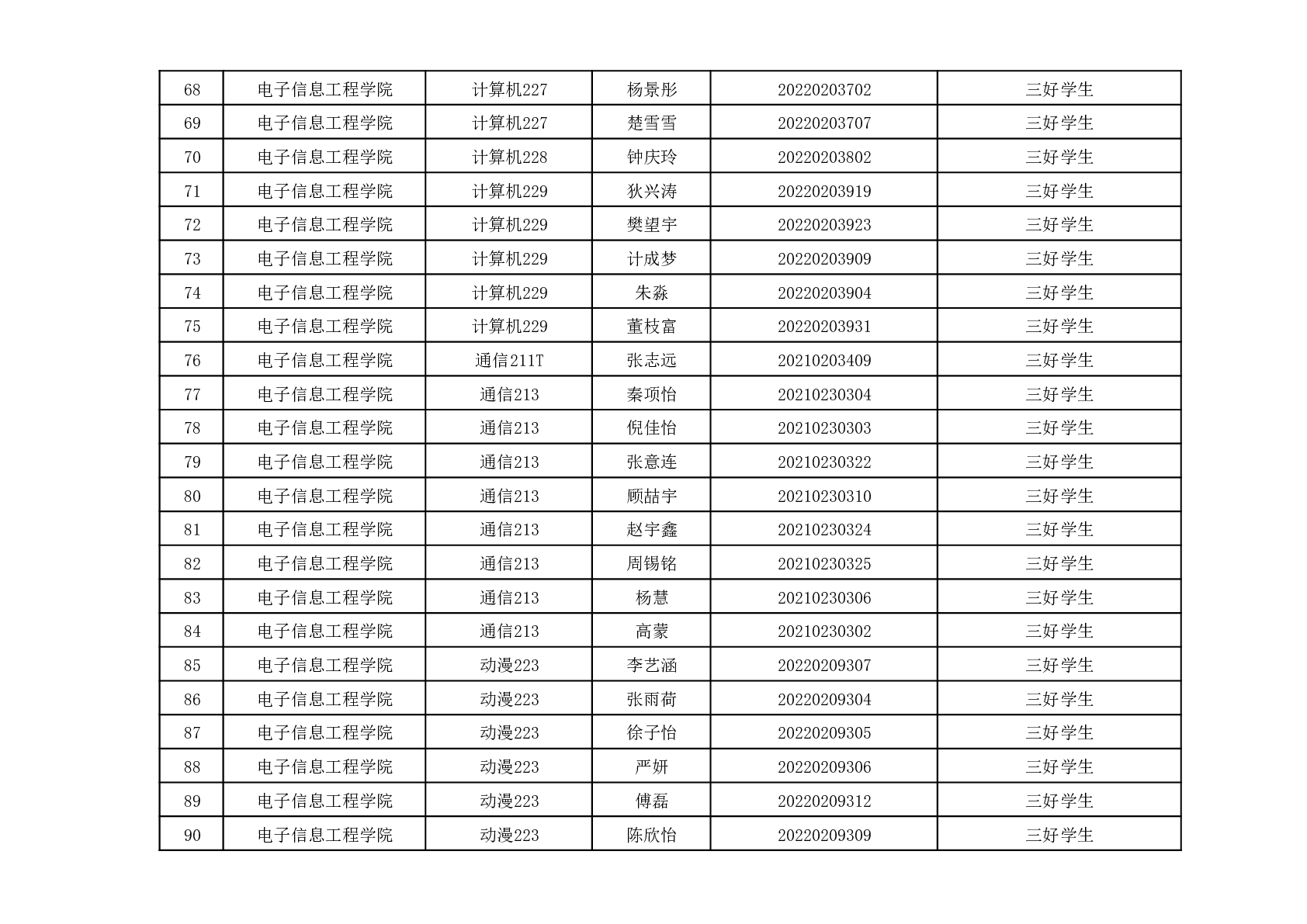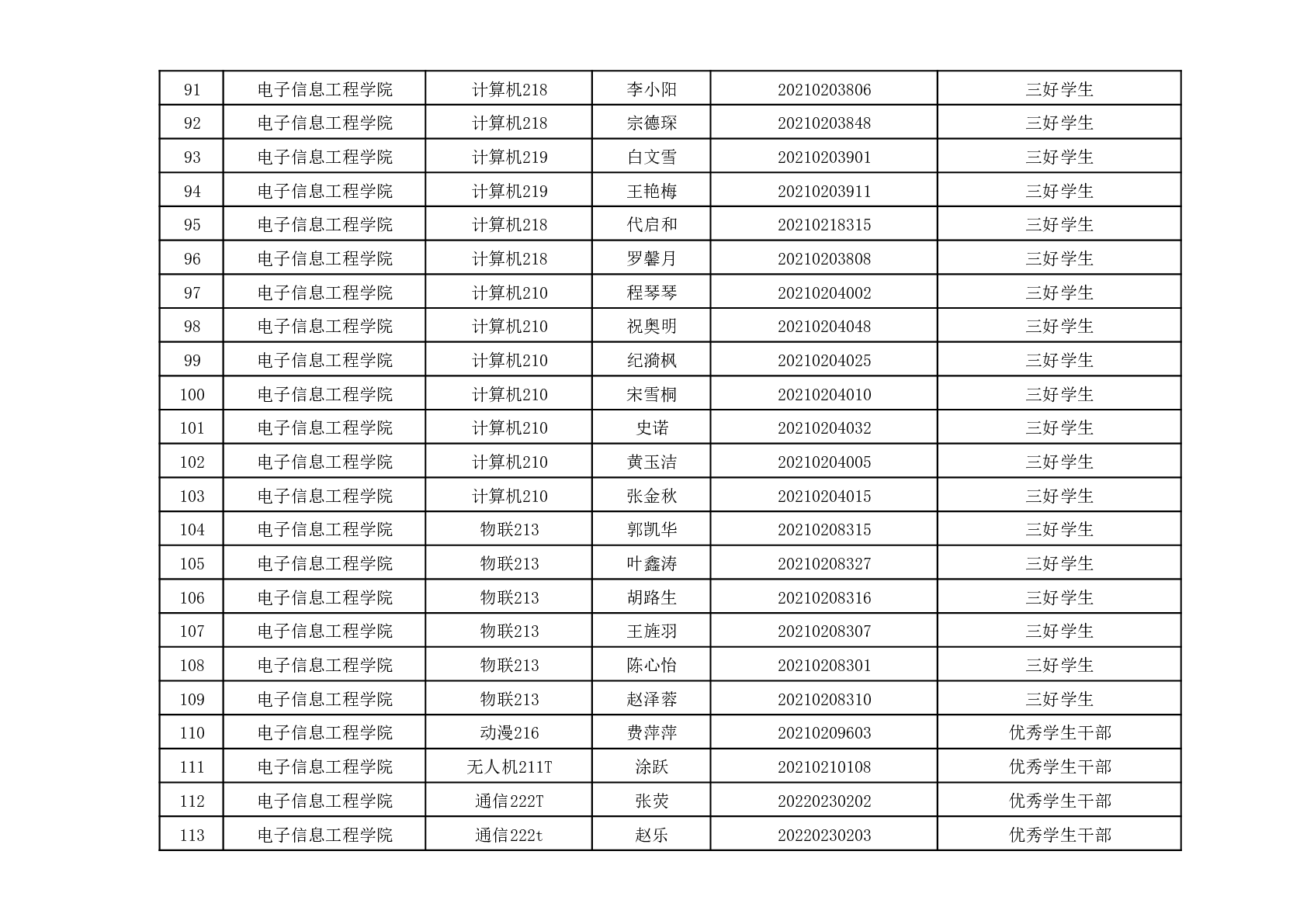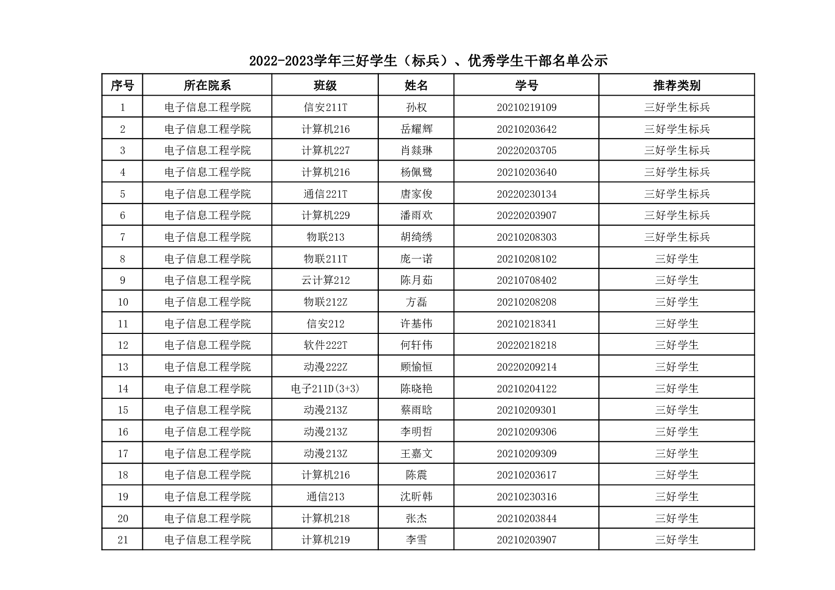 2022-2023学年三好学生(标兵)、优秀学生干部名单公示