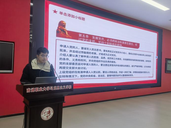 在培训中,马克思主义学院教师陶燕辉、6776永利集团辅导员杜欣远分别以《共产党员的情怀----胸怀天下》和《认真学习党章,严格遵守党章》为题进行授课,引导同学们树立胸怀天下的情怀,增强党章党规意识,坚定对马克思主义的信仰、对社会主义和共产主义的信念,自觉加强党性锻炼,努力提高自身综合素质。