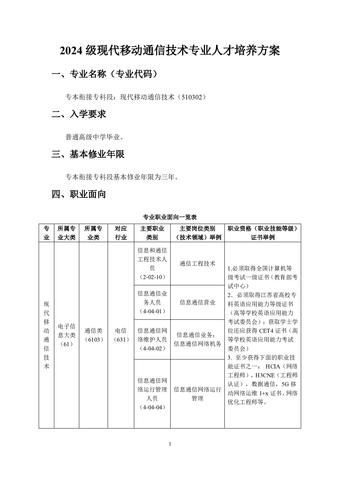 2024级现代移动通信技术专业人才培养方案(专本衔接专科段)