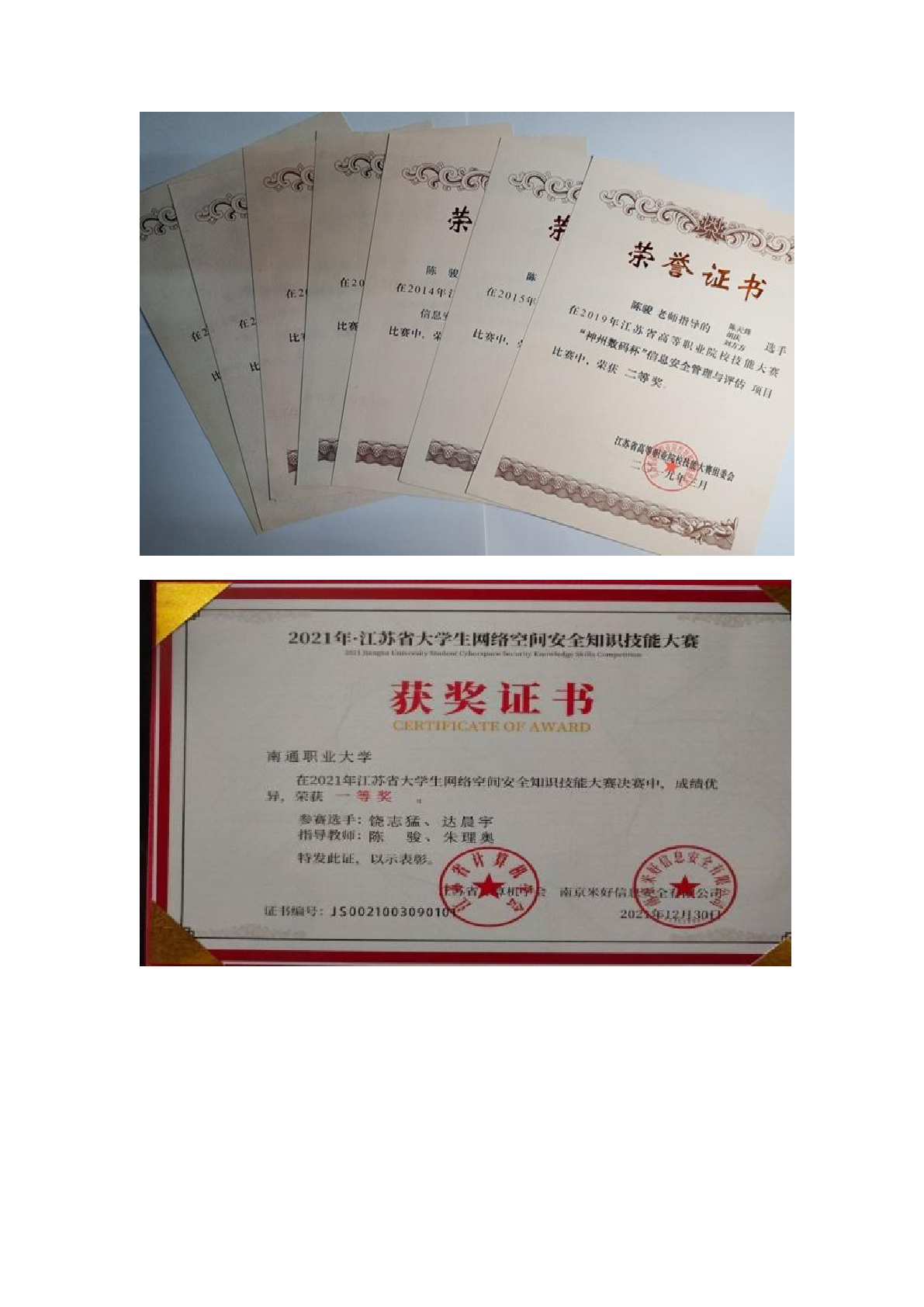 部分证书展示