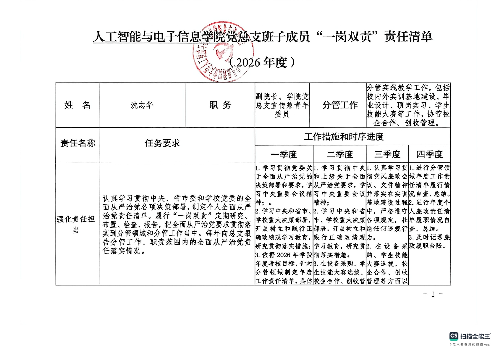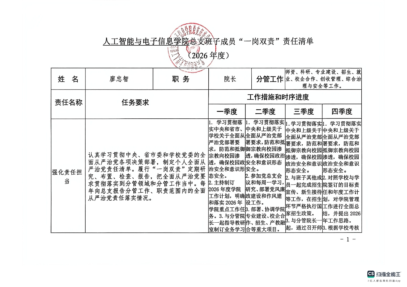 智电学院党总支责任清单